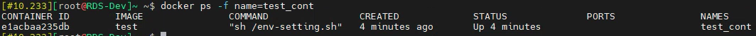 컨테이너 이름은 test_cont, 베이스 이미지로 제가 빌드한 test 이미지를 사용했습니다.