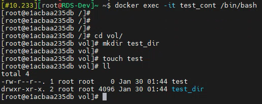 volume_test라는 이름의 볼륨에 컨테이너 내부의 /vol 디렉터리와 링크를 걸어주었습니다.